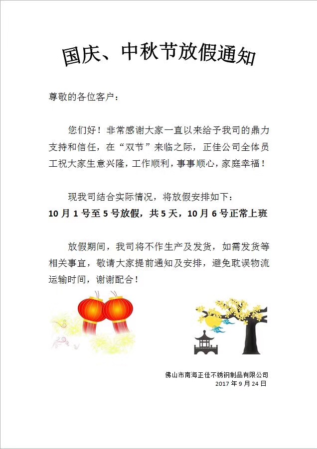 國慶中秋雙節(jié)放假通知